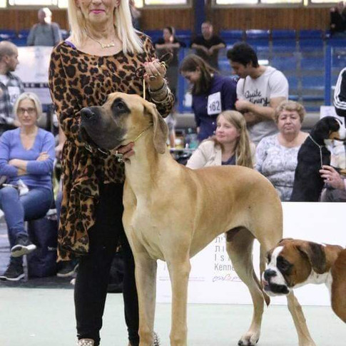 בתערוכה הבינלאומית הראשונה לשנת 2019 השתתפו 7 דנים. נציג אחד בצבע השחור/הארלקין, נציגה אחת בצבע הכחול וחמישה נציגים בצבע החום/מנומר.